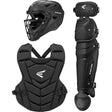 The Easton Black Magic 3.0 Youth Catcher’s Set is built to deliver elite protection and performance for young players taking control behind the plate. Sized specifically for youth catchers, this gear features ergonomic designs that move naturally with the body to help players stay mobile and protected throughout every inning. The helmet boasts a centered view port and high-impact steel mask, giving players premium visibility and protection from foul tips and wild pitches. The chest protector is designed to resist bunching or folding when crouched, so players stay fully shielded without sacrificing range of motion. Articulated leg guards are engineered with contour zones to flex naturally, offering ideal wrap and coverage throughout the catching motion. Whether you're behind the dish for the first time or building confidence as a young backstop, the Black Magic 3.0 is the go-to choice for youth catchers. Gear up like the next legend with the Easton Black Magic 3.0 Youth Catcher’s Set.