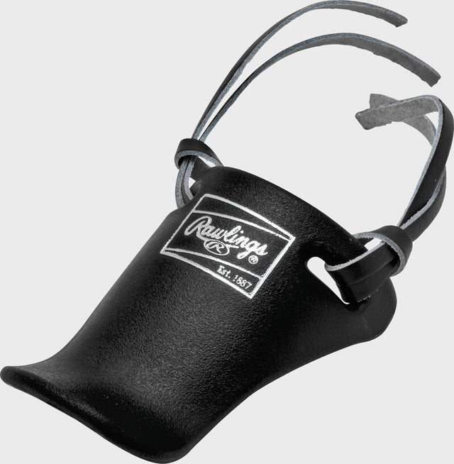 This 4" Youth baseball catcher's throat protector fits any Rawlings catcher's face mask. This throat protector is lightweight polyethylene and ties to the mask with a leather lace (included).