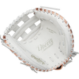 This Liberty Advanced catcher's mitt utilizes soft leather to give you a more game-ready feel and a quick, easy break-in. In addition, its adjustable Pull Strap back allows for a custom fit so you can frame even the toughest pitches on the corner. For added comfort, the Poron XRD palm padding absorbs impact to reduce sting from hard pitches. Finally, the black and rose gold accents add the perfect touch of style to the white base to make you stand out.