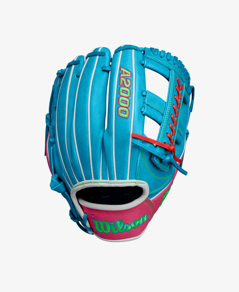Cover more ground on the infield with the Fall 2024 A2000 1785, an 11.75” baseball glove with a Single Post Web & Flamingo Pink lace baseball stitching to secure batted balls. The Tropical Blue Pro Stock leather palm offers durability and feel players prefer while gap welting – a piece of the palm folded between the index and middle fingers – allows for a deep, stable pocket. The 11.75” reach empowers infielders to make backhand plays down the line or turn two up the middle, and Flamingo Pink & Bright Green accents deliver style to match your play.