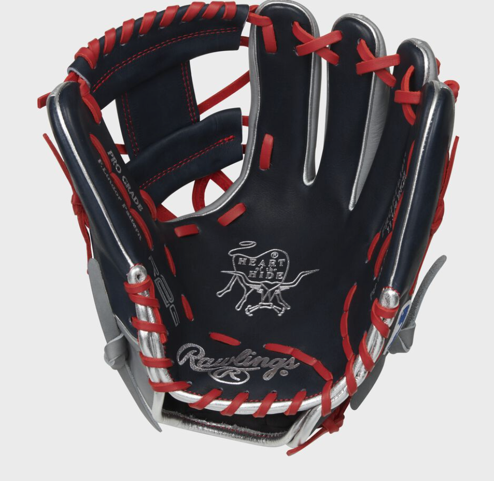 In addition, this Heart of the Hide glove was crafted in Rawlings Gold Glove Award winner Francisco Lindor's gameday pattern, with a stylish navy/gray design and a pro I-web. Like all our HOH gloves, this gamer boasts a shell palm leather liner, padded thumb sleeve, and thermoformed wrist liner for optimal comfort and feel. Our R2G gloves also feature a narrow fit design and redesigned heel pad for a better fit and easier close too!