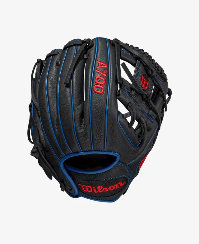 • Sharpen your fielding skills up the middle with the A700 11.25” Infield Glove. Black and Royal Blue Full Grain leather with our iconic H-Web is game ready on day one.