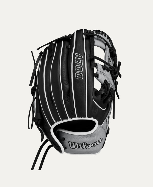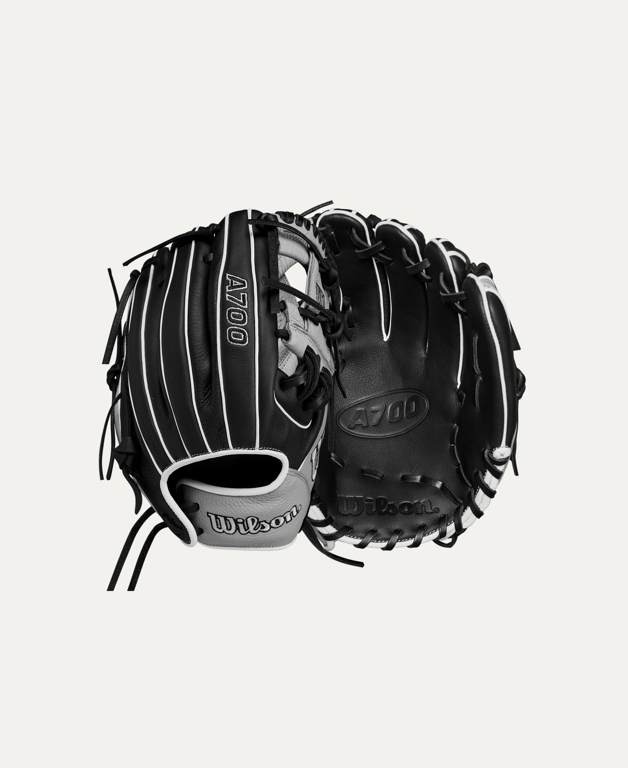 The 2024 A700 11.5” Youth Infield Glove helps young players improve their fielding skills on the infield dirt. The Grey and Black design with Wilson’s iconic H-Web is lightweight and game ready right away.