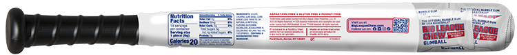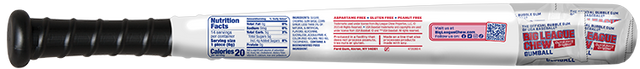 This sturdy 18″ plastic bat and the 3″ diameter plastic baseball is filled with Big League Chew® individually wrapped Outta’ Here Original bubble gum balls.