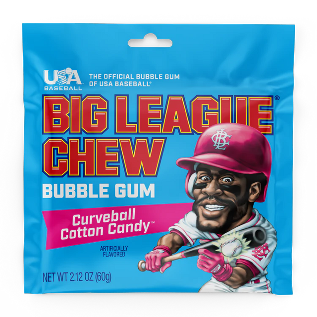 - THE OFFICIAL BUBBLEGUM - Your favorite chewing gum Big League Chew, now available in Cotton Candy that is perfect for baseball and softball season in the dugout for the team and coaches, courtside at basketball games, football fields, soccer, lacrosse, or any sport indoor and outdoor.